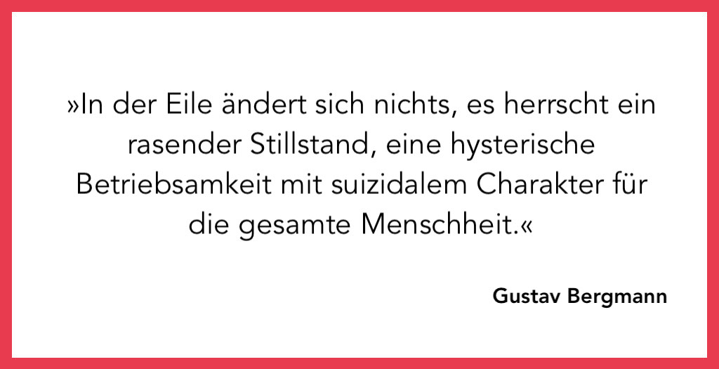 Gustav Bergmann, Professor für Innovations- und Kompetenzmanagement in Siegen, findet gar: „In einer ökonomisierten Welt der Raserei ist Demokratie kaum zu verwirklichen. Demokratie braucht Weile, Muße und Möglichkeiten zur leidenschaftlichen Teilhabe.“