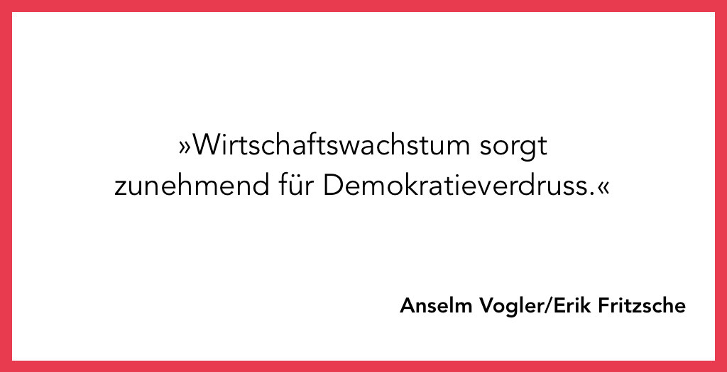 Funktioniert Demokratie nur, wenn die Wirtschaft wächst? fragen die Politikwissenschaftler Anselm Vogler und Erik Fritzsche aus Dresden. Ihre Antwort ist eindeutig: „Nein, denn Demokratien benötigen zunächst und vor allem Legitimität.“