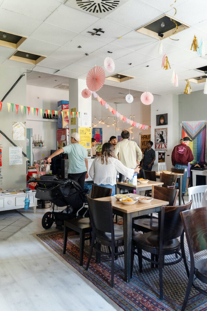 Giuliano: Ich finde ein Beispiel dafür ist: 2022, als hier alles gestartet ist und es nach und nach immer mehr Veranstaltungen gab, waren hier ein, zwei Sachen pro Woche. Dann wurde es ein bisschen mehr und dann kam es zum ersten Mal vor, dass hier an einem Samstagabend drei Veranstaltungen gleichzeitig waren. Wir haben dann überlegt, ob das irgendwie blöd ist, wenn so viel gleichzeitig ist, bis wir verstanden haben: Hey, das ist keine Konkurrenz, das ist bereichernd. Und natürlich birgt das Konfliktpotenzial, aber Konflikte werden dann eben besprochen.